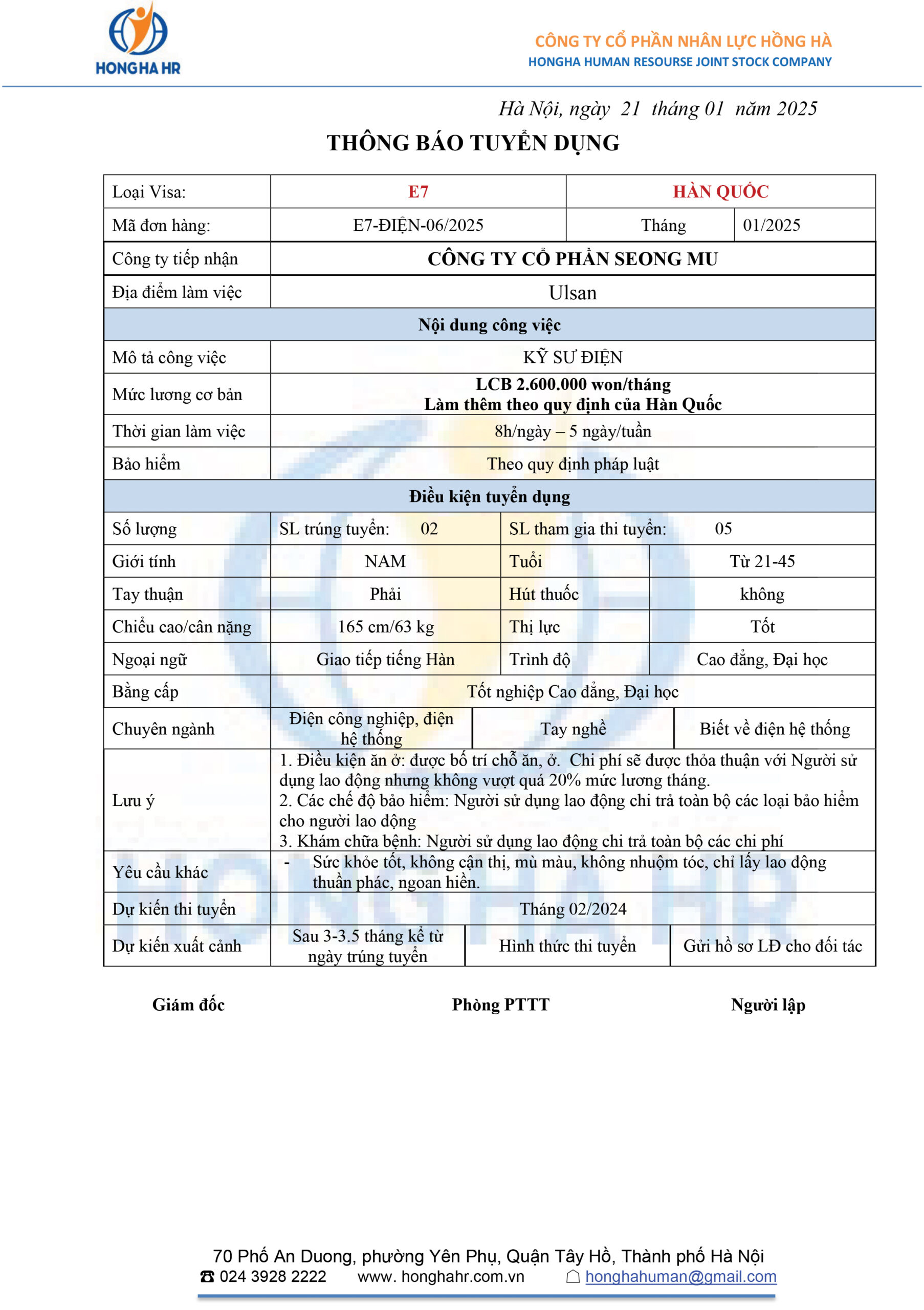 Tuyển THỢ HÀN lao động tại Hàn Quốc Số lượng tuyển: 2 Lương cơ bản:...